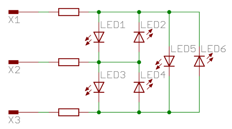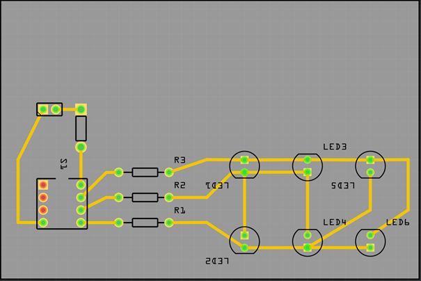 We moeten zes LED's laten branden in een patroon. Maar de zes LED's moeten worden aangestuurd met alleen 3 pins van de ATtiny 85 microcontroller. Om dit te doen moet je Charlie-plexing gebruiken. Je moet een pcb (printed circuit board) maken waar de componenten op zitten. De pcb moet je maken met de freesmachines die op school staan. Om dit project te kunnen maken moet je de programma's Fritzing en Flatcam gebruiken.