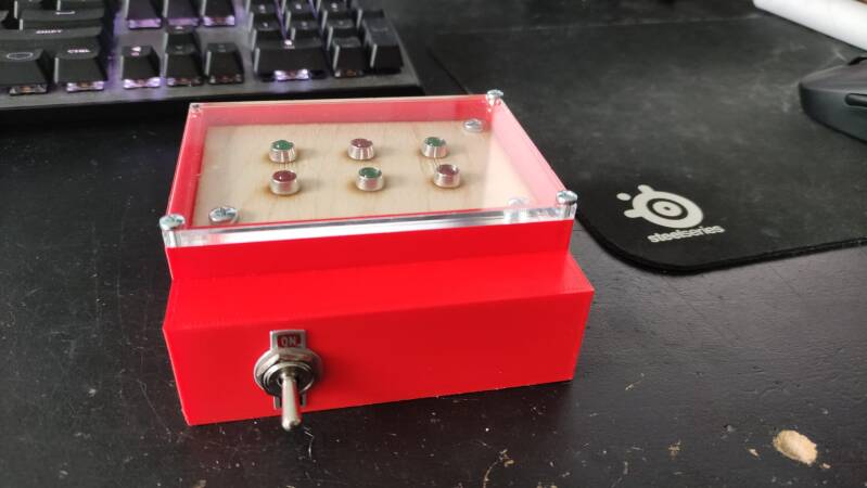 Ik heb ook een doosje voor dit project ontworpen in Inventor en met mijn 3d printer geprint. ik heb ook een deksel gemaakt met de lasersnijder op school.