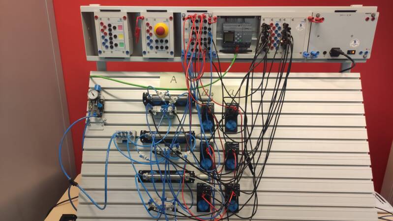 Hierna kon ik aan de slag met het maken van de code, dit word gedaan in het programma LogoSoft. dit was best goed te doen omdat ik dit al eerder in de les had gedaan. hierna kon ik gelijk door naar het maken van de opstelling, dit is me met weinig moeite gelukt omdat je alleen een paar kabels hoeft te verwisselen. Vervolgens moest ik de code uploaden naar de PLC en het werkte in een keer!
