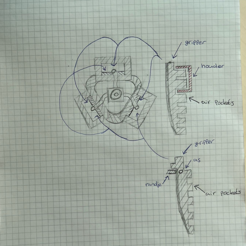 We kregen deze periode de opdracht op een gripper te maken die doormiddel van luchtstroom iets kan oppakken en verplaatsen. We hebben gekeken naar een aantal voorbeelden van softgrippers en toen zijn we aan de slag gegaan.
